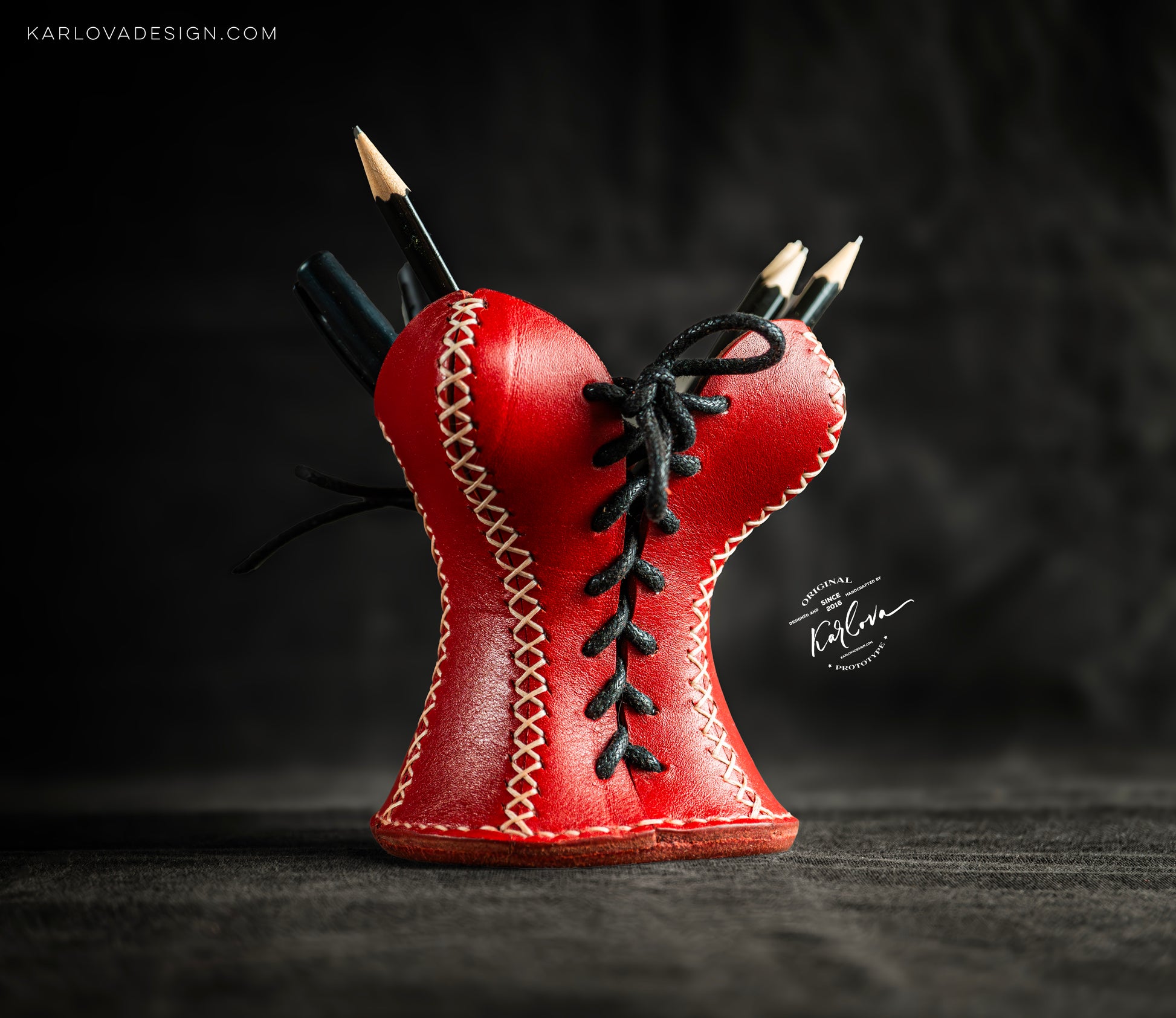 Cute and elegant pencil cup in the shape of a corset would embellish any desk :)